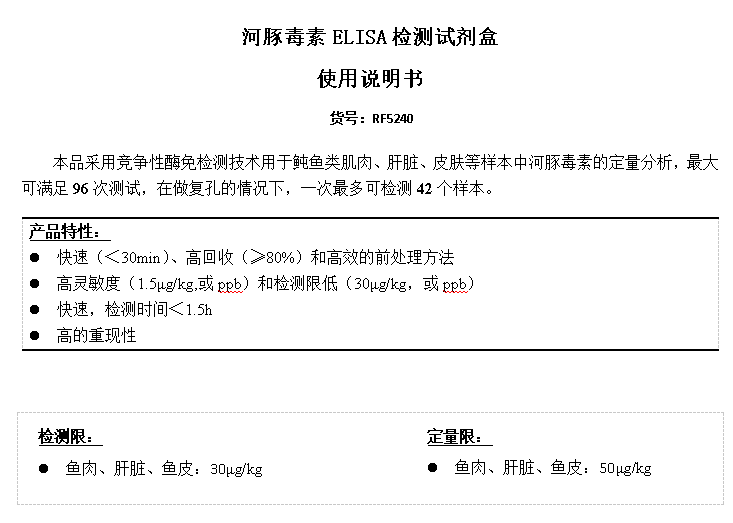 河豚毒素ELISA檢測(cè)試劑盒